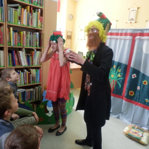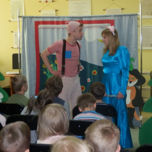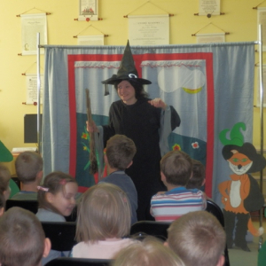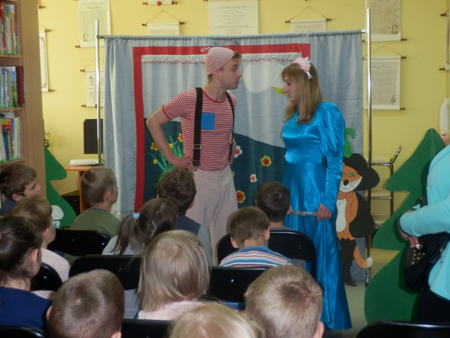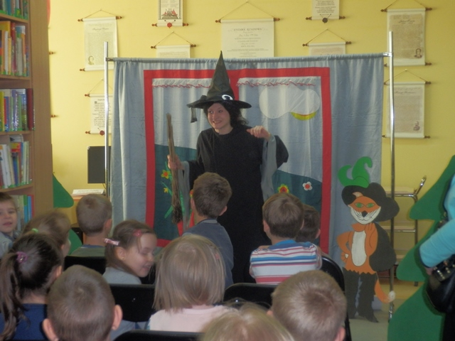 Już po zakończeniu Tygodnia Bibliotek, bo 17 maja dzieci z klas pierwszych z Brzózego i Stojadeł miały okazję obejrzeć przedstawienie pod tytułem