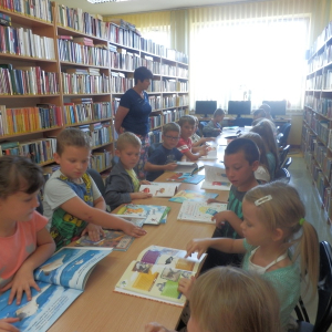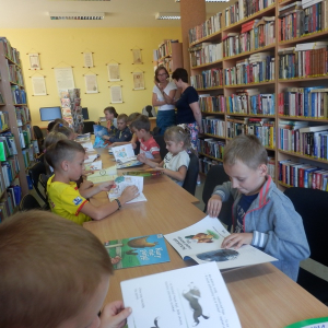 Lekcja biblioteczna dla uczniów klasy I Szkoły Podstawowej w Stojadłach.