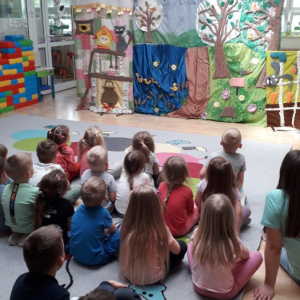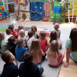Z okazji tygodnia bibliotek zaprosiliśmy teatrzyk Arlekin do przedszkola “Akwarelka” w Nowych Osinach.