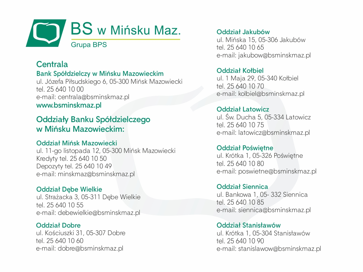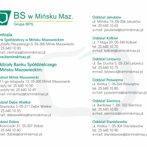 Bank Spółdzielczy w Mińsku Mazowieckim to gwarancja atrakcyjnej oferty, miłej i profesjonalnej obsługi, oraz indywidualnego podejścia do każdego Klienta.