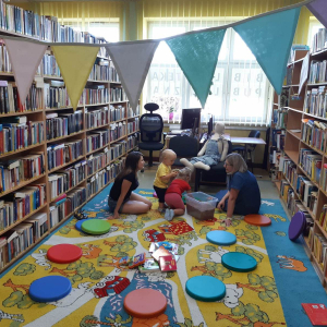 Nasza czytelnia zamieniła się dzisiaj we wspaniały, kolorowy plac zabaw.