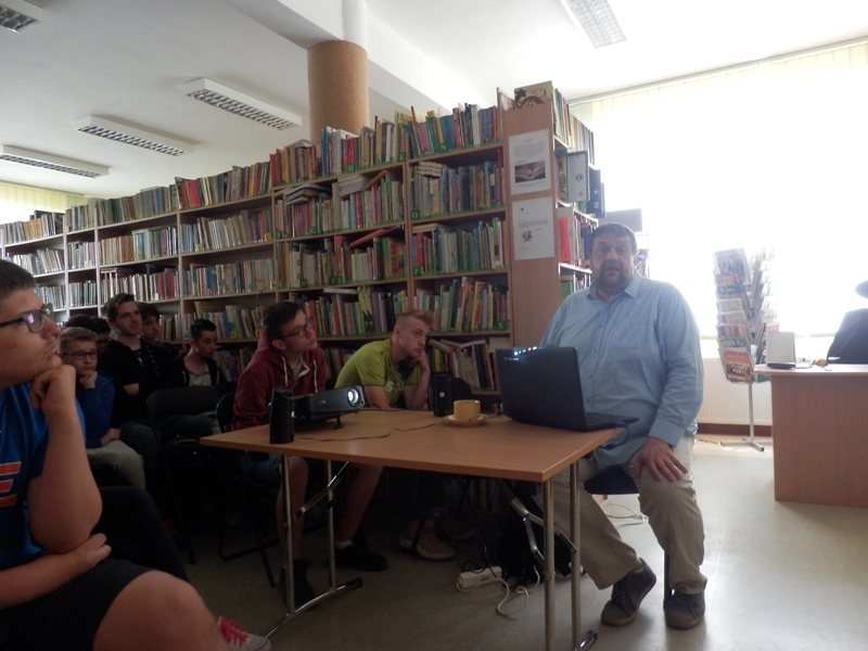 W dniu 14 maja w bibliotece odbyło się spotkanie Jarosława Górskiego z uczniami klas trzecich gimnazjalnych z Janowa i Stojadeł.