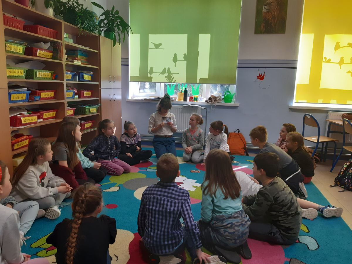 Rozmowy na ważne tematy, twórcza ekspresja i dobra zabawa, czyli warsztaty z uczniami Szkoły Podstawowej w Janowie.
