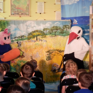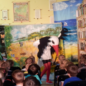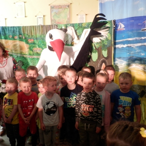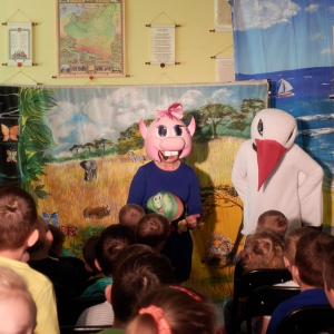 Tytuł sztuki wystawionej u nas dwukrotnie to “Przygody Bociana Klekosława”. Aktorzy, pokazując przygody głównego bohatera Bociana lecącego z Afryki do Polski, wprowadzili do spektaklu elementy edukacyjne związane ze zdrowym odżywianiem oraz patriotyzmem.