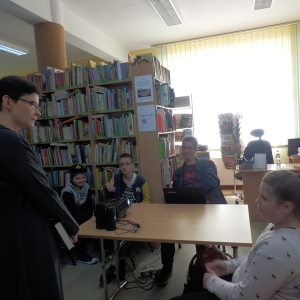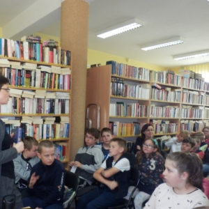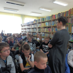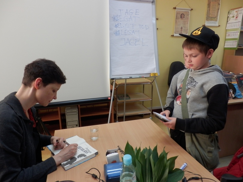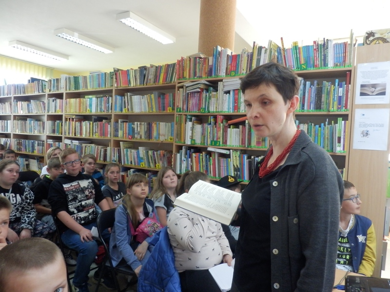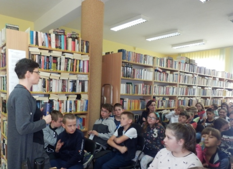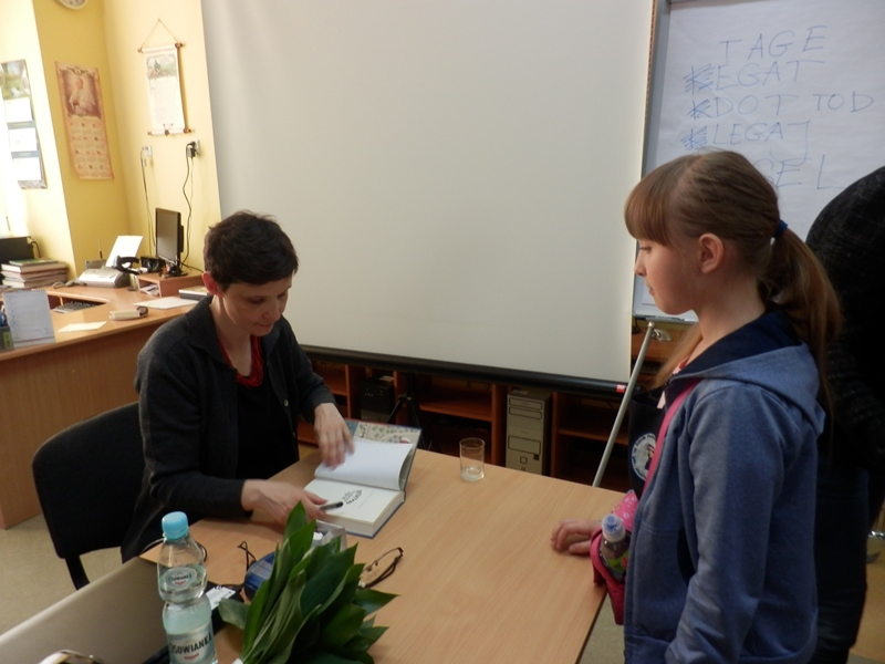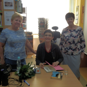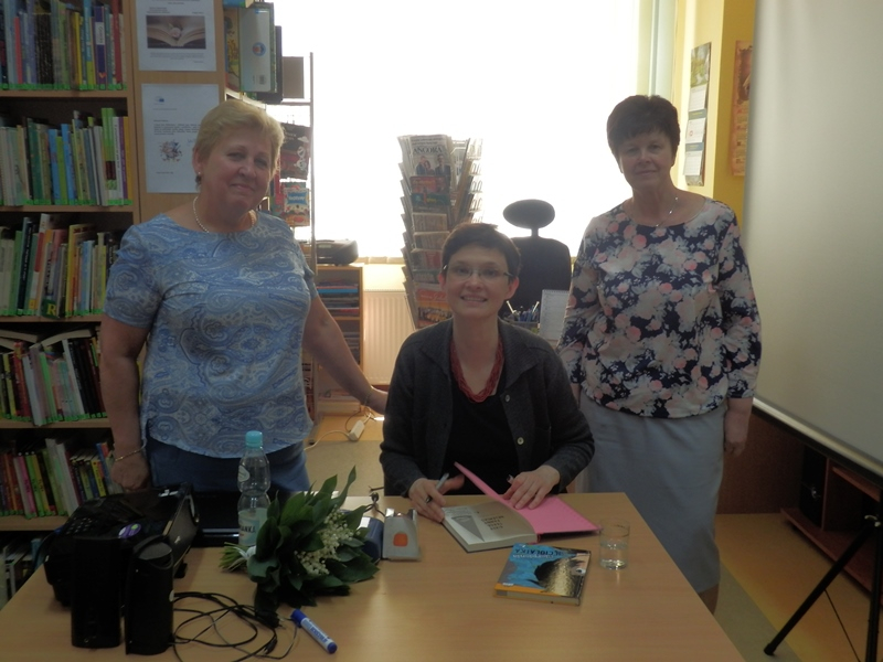 W bibliotece spotkała się z uczniami klasy IV szkoły W Mariance oraz klasy V w Stojadłach. W interesujący sposób zapoznała młodych czytelników ze swoją twórczością. Wzbudziła w nich potrzebę czytania.