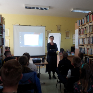 W dniu 15 maja 2018 r. gościła w bibliotece Zuzanna Orlińska . Pani Zuzanna jest absolwentką Wydziału Grafiki warszawskiej ASP, ilustratorką i autorką książek dla dzieci i młodzieży.