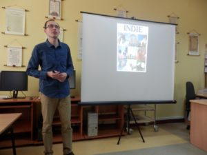 W dniu 6 czerwca 2017 r. bibliotekę odwiedził podróżnik Piotr Kowalczyk. Nasz gość spotkał się z gimnazjalistami z Janowa i Stojadeł. Przedstawił ciekawą prezentację na temat Indii – egzotycznego kraju kontrastów. Zarówno prezentacja jak i ciekawa opowieść o tym niezwykłym kraju, oparta została na własnych obserwacjach pana Piotra, ponieważ przez kilka miesięcy przebywał w Indiach.