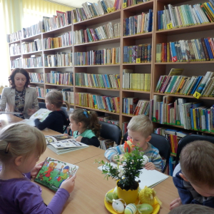 W dniu 16 kwietnia 2014 r. tuż przed Świętami Wielkanocnymi bibliotekę odwiedzili najmłodsi czytelnicy czyli “Krasnale” i “Zuchy” ze szkoły podstawowej w Stojadłach. Tematem spotkania były polskie obyczaje i tradycje związane ze świętami. Dzieci wysłuchały opowiadania, obejrzały kolorowe książki i chętnie opowiadały o zwyczajach w ich rodzinach.