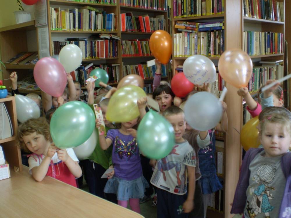 Kolejny dzień, 10 maja był dniem otwartym dla dzieci w wieku przedszkolnym. Ogółem bibliotekę odwiedziło 70 dzieci. Nasi najmłodsi czytelnicy wysłuchali opowiadania Franklin gra w piłkę nożną, otrzymali drobne upominki w postaci zakładek do książek, balonów i słodyczy.