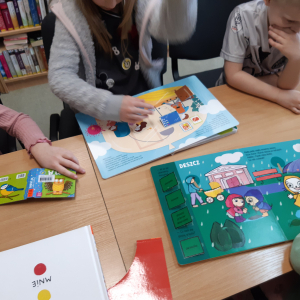 Prezentujemy również nowości wydawnicze oraz książki zabawki, często zawierające niespodzianki. Niezmiennie dużym zainteresowaniem cieszy się Czarna książka kolorów przeznaczona dla osób niewidzących.