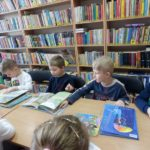 Dzieci obejrzały również nowości wydawnicze przeznaczone dla nich, będące w zbiorach biblioteki.