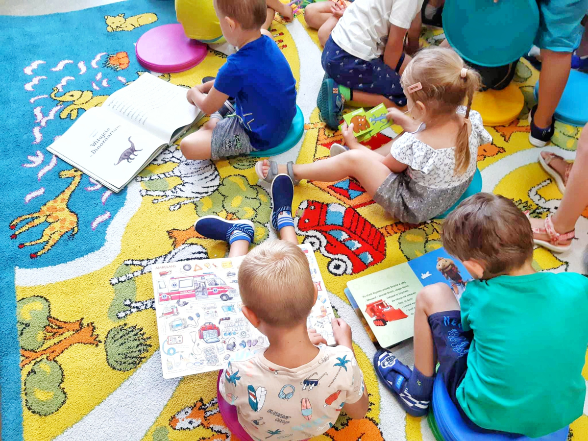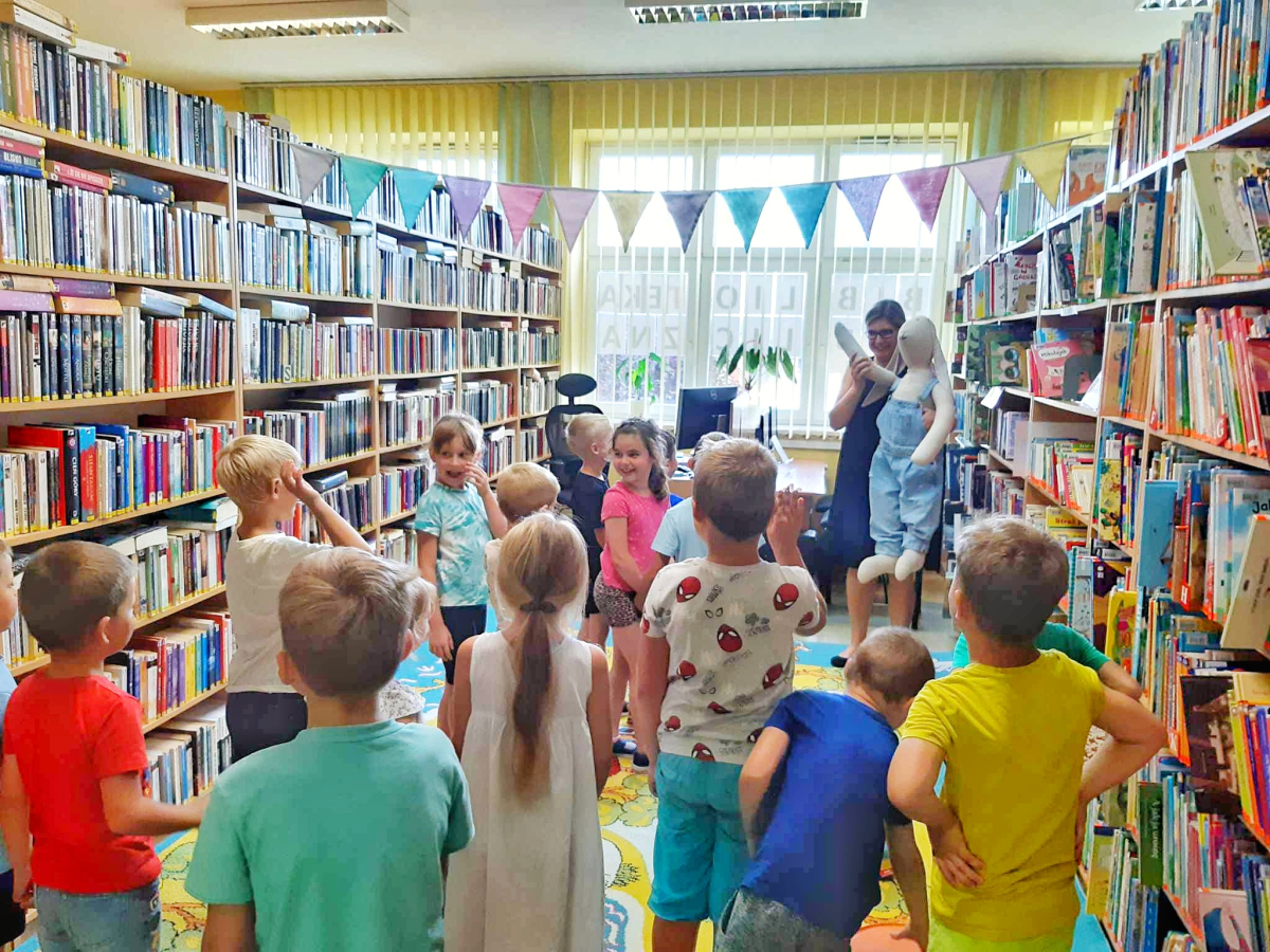 Dzisiaj gościliśmy dzieci z całej Gminy Mińsk Mazowiecki. Na najstarsze dzieci, które korzystają z opieki przedszkolnej w okresie wakacyjnym, czekała dzisiaj niespodzianka – wizyta w bibliotece. Już na samym wejściu dzieciaki powitał nasz Królik Franek. Następnie dzieci wysłuchały bajki o przygodach Królika i jego przyjaciół oraz historię o Kici Koci i jej wizycie w bibliotece. Później dzieci mogły same wybrać z półek książeczki. Nasi Mali Goście byli zachwyceni, bo każdy znalazł książkę w interesującym go temacie, z ulubionym bohaterem lub odkrył coś zupełnie nowego. Wszystkie dzieci wyraziły chęć i zainteresowanie dołączenia do grupy stałych czytelników, dlatego przekazałyśmy list do rodziców, w którym opisane są warunki i zasady zapisania się do Biblioteki. Dodatkowo dzieci w wieku 3-6 lat, które zapiszą się do Biblioteki, przyłączają się do projektu „Mała książka – Wielki człowiek”. Fantastyczna akcja, dzięki której dzieci rozwijają swoje zainteresowanie książkami i czytaniem. Przystępując do programu, dzieci otrzymują książeczkę w prezencie, w zestawie jest również publikacja dla rodziców, dodatkowo zakładka do książki oraz karta członkowska, na którą dzieci wklejają naklejki. Wszystkie szczegółowe informacje możecie Państwo uzyskać na miejscu w Bibliotece lub telefonicznie. Trudno było zakończyć tą fascynującą przygodę jaką okazała się wizyta w bibliotece. Na zakończenie dzieci dostały pakiety z elementami do samodzielnego wykonania zakładki do książki z wizerunkiem naszego Bibliotecznego Królika Franka.